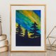 北極光北極光場景,北方風景藝術品,粉彩藝術