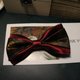 红色真丝拼接咖啡色复古花纹领结蝴蝶结