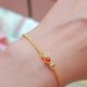 - |鴻運•和美|a貨翡翠天然無燒冰玻紅翡蛋面4×1.8mm純銀鍍18k黃包鑲精緻古巴手鍊,可調,附證書(鏈長15+3cm)