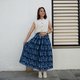 淺藍色裙子設計精美,全身印有卡揚長頸山部落圖案,後腰鬆緊。布料柔軟,穿著舒適。附有隱藏式拉鍊和兩側深口袋,超實用。