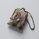 小さなビーズ刺繍のがま口 No.70 グレーのガーゼ ネックレス・バッグチャームにも アクセサリーケース 手刺繍の一点物 - 吊飾/掛飾 - 棉.麻 灰色