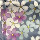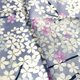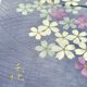 This beautiful vintage handkerchief is made of quality woven cotton with a subtle wave pattern in the fabric. The design features cherry blossoms blooming gracefully on a gradient purplish-blue background. The petals appear in soft shades of white, pink, and greenish-gray, accented with tiny golden dots that add an elegant sparkle. Delicate, graceful, and truly charming — perfect for yourself or as a thoughtful gift for someone special.