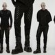 - 野性的龐克式對稱視覺長褲。採用彈力斜紋梭織,網布,斜紋壓膠料製作。不規則裁片拼接設計。前幅對稱裝飾袢與鉚釘點綴豐富視覺。