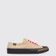 - 米色運動休閒男鞋,鞋身為90%天然棉搭配對比色的鞋帶,大底為黑色與棕色,由23%再生橡膠材質製成。