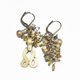 oldアフガンメタルパーツとたわわなトルマリン&ハーキマーダイヤモンド、インディゴブルービーズ、民族鈴を繋いだアンシメトリーピアスです。