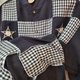 日本古著 雪紡 格紋星星刺繡 亨利領 長襯 L號 近全新