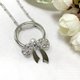 吊墜設計別緻,鏤空圓環搭配蝴蝶結和珍珠裝飾,