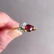 赤い実や蕾を思わせるガーネット、葉のように並ぶ小さな石たち、軽やかなワイヤーワークは、植物の美しさをそのまま閉じ込めたようなデザインです。