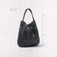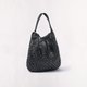 寬窄不一的皮片交疊出不工整的圖紋,放大皮革編織的層次感,有如高第在奎爾公園裡的馬賽克拼接磁磚般,只不過它的色彩繽紛,而Noreen的編織圖紋是單色馬賽克。