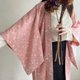 日本製和風花朵印花粉色古著羽織和服外套-H426
