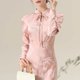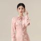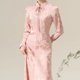 - 新中式復古中國風 粉紅收腰改良旗袍