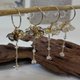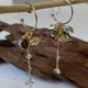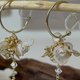 這款耳環採用C型耳圈,搭配垂墜的水晶花,呈現出花朵枝條伸展的意象。同時,結合Swarovski水晶及水滴玻璃珠製成的流蘇,來營造下雨的感覺。