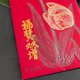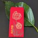 - 使用金色與藍色金屬筆直接繪圖(鬱金香插圖)在紅包袋中央,右下角另搭配金色中文手寫祝賀詞「福慧雙增」,紅包袋採用略厚的90g紅色細紋紙。