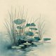 《池畔無聲》是一幅以靜謐為語言的藝術作品。畫面以極簡筆法描繪水畔的倒影與浮萍,柔和的藍灰色調隨著光線漸次淡去,彷彿時間在此刻靜止。藝術家以輕盈的筆觸捕捉自然中最細微的氣息,透過層層留白,構築出一種「看得見空氣」的詩意。
