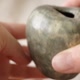 外側是手刷上釉,層層疊疊,讓釉因為厚度不同自然呈現不同的顏色,就像池塘,也像森林,斑斕有致。