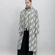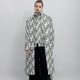 系列將原住民圖騰與現代設計元素巧妙融合:設計師解構並重塑經典千鳥紋,將烏鴉飛翔的姿態與羽翼融入幾何單元,捕捉展翅動態,創造全新印花語言。色彩上,橄欖綠象徵隱秘與深沉,熾焰紅致敬烏鴉創世的傳說之光,寂靜灰則呈現時間與記憶交錯的沉靜氛圍。印花隨模特步伐律動,如同烏鴉的翅膀在服裝上翱翔,展現動態的神秘美感。