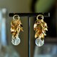 《聖城》-金色步道-金樹葉白水晶金18K鍍金耳環