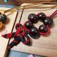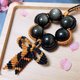 圓珠:加工瑪瑙(藍沁龍鱗裂紋珠)、金曜石、紅石榴石