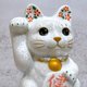 這款日本清水燒招財貓散發出華麗高貴的藝術氣息,水白色的花結晶工藝細膩優雅,晶瑩剔透