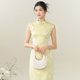 - 【淺松綠】新中式復古中國風 提花盤扣/立領改良旗袍
