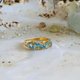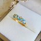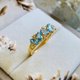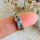 💙🦋這款璀璨奪目的瑞士藍托帕石戒指鑲嵌五顆 3 x 5 毫米橢圓形切割寶石,總重約 1.30 克拉。寶石淨度高,光澤度佳。戒指採用對角線排列設計,展現出甜美動人的藍色調,並點綴以復古圓形切割的白色鋯石。