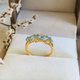 - 戒指鑲嵌橢圓形瑞士藍托帕石,與白色鋯石交替排列。