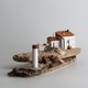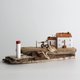 流木、ねじ・釘(赤錆加工)、ホワイトウッド(欧州スプルース、ドイツトウヒなど)、ステイン、ペンキ等で製作。ヤスリでダメージ感を演出しています。「潮騒とカモメの鳴き声、風の音」を感じていただければ幸いです。