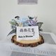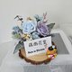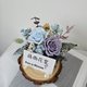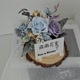 【花材】永生玫瑰、繡球花、木片瑪格麗特、迷你滿天星、法國白梅、蠟菊、尤加利葉、常春藤葉、加那利、小星花、琥珀果、蓬萊松、小樺木葉、黑種果