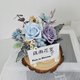 原木片底座永生玫瑰名片座,是開幕、祝賀送禮的好選擇,有招財貓款與珍珠款可以選擇