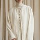 外套採用弧形領口的設計,不僅貼合頸部曲線,帶來舒適的穿著感受,更在視覺上呈現出柔和耐看的線條,為整體造型增添了一份溫婉與優雅。