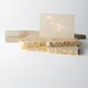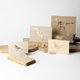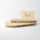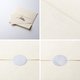 明信片與信封均採用日本特選紙「新Baffun紙N」。紙上散佈著短而細小的纖維,呈現出類似泥牆的外觀,別具風味。不思議的是,它還帶有一種柔軟蓬鬆的觸感,而且重量極輕,這是這款紙的有趣之處。當您看到信封上圓潤隆起的壓紋時,就能充分感受到其柔軟的質感。