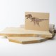 透過使用名為「彩光腐蝕」的特殊金屬版進行燙金,在部分區域留下細膩紋路,部分區域則無,創造出複雜而生動的光澤。圖案設計簡潔,卻能感受到動物的生命力,風格獨特。