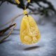 商品賞析:金黃如火、光潤如油,這件收藏級雞油黃飄花蜜蠟不動明王掛件以高等料質精雕而成,色沉而亮、質厚而潤,天然飄花在光下如護法氣流盤繞,靜觀即能感受其鎮定、穩心的力量。雕刻師以正規工法呈現明王威儀:一手執劍斬煩惱業障、一手持索鎮伏邪念,神態堅毅、肌理飽滿,立體層次細緻到鬍髭、甲紋皆清晰生動;在蜜蠟柔暖的光澤中,威嚴與慈護並存,展現「剛中帶柔、不動守護」的至美神韻。