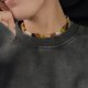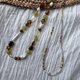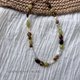 這條項鍊的色調是大地系:橄欖綠、琥珀棕、奶油白貝、透明石