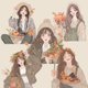 這套組合包含洋溢秋日暖意的女孩貼圖與水果主題拼貼素材。