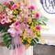 / 粉色系花材搭配跳躍的金黃色文心蘭,視覺層次柔中帶亮,如同把「恭喜」化成一束真正會發光的祝福。 /