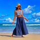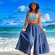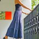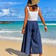 Elastic full waist. You can wear it high waist or a normal waist. 3 tiers bloomer pants which flare out beautifully. Very comfortable on the skin. Very easy to pair and looks good with any top, loose or fitted!