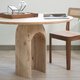 遠眺群山,乘著車,經過蜿蜒道路,穿過無數先人開鑿的隧道,我們才得以進入山林,享受大自然的懷抱。將這樣的意象轉化為Arch 系列傢俱設計概念,讓傢俱成為起居空間的靈魂要角,用以打造個人獨有的居家風格。素材特意選用色澤與紋理豐富的國產木材,Arch 系列以木代岩,透過豐富木紋理與圓弧雕塑型式展現岩層紋理的流動感,其深淺交錯的紋理營造出沉穩典雅的光澤。現代感線條搭配穿透的圓拱造型基座,營造輕盈與視覺通透感。異材質結合木桌面與簡潔的金屬支架設計,強化整體結構性與承受力,讓桌子結構保持細緻卻依然能穩固滿足日常置物使用需求。