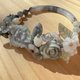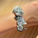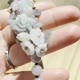 I created this bracelet with jade beads in smoky grey and soft white, paired with layered floral carvings.