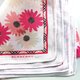 Charming vintage handkerchief featuring bold pink daisies with check-pattern pollen and a matching check border. A delightful balance of playful and classic — soft cotton fabric that adds a touch of British charm to any outfit or collection.