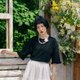 搭配長裙,安靜優雅。