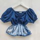 💙 專為嬌小女孩設計的V領泡泡袖上衣💙,胸部採用褶皺設計。採用柔軟耐穿的棉質布料,天然靛藍紮染賦予每件單品獨特的個性。 🌿