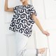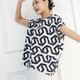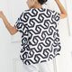 黑色六角形線條寬版上衣 / 白色 透氣舒適,春夏皆宜