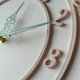 Materials: plywood, acrylic paint, decorative paste, quartz movement, 2 metal hooks for hanging.