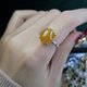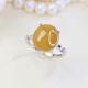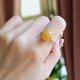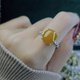 - 福利價|招財奶油焦糖|緬甸A貨翡翠冰黃翡大蛋面12.3×11.1×5.5mm純銀鍍18k簡約戒指,可調,附證書