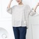 磚紅碎花拼接米色領口布徽上衣 / 白色 透氣舒適,夏秋皆宜