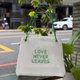 袋子的背面印著一句話:「Love never leaves」。