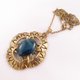- Turkish Blue Agate Stone Necklace Gemstone Large Golden Pendant Necklace Jewelry Dark Blue Turquoise Marine Blue Navy Blue Stone Antique Style Necklace Unique Handmade One of a Kind Gemstone Jewellery Necklace Woman Jewelry Gift for Her Man Jewelry Gift for Him