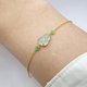 ►高品質天然緬料翡翠,主珠是整顆胖胖圓潤的葫蘆,料子老種細潤,旁邊再點綴兩顆陽綠鮮綠色的蛋面,做一個跳色的感覺。整圈手鍊以18K金去做鑲嵌,簡約中帶點精緻的感覺,上手非常顯氣質婉約的感覺。