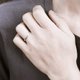 選用925純銀手工製作,以流暢線條勾勒戒指輪廓,塑造出圓潤飽滿的弧度。經過細心研磨的銀戒觸感柔順,表面散發明亮光澤,為您創造別俱特色的個人風格。